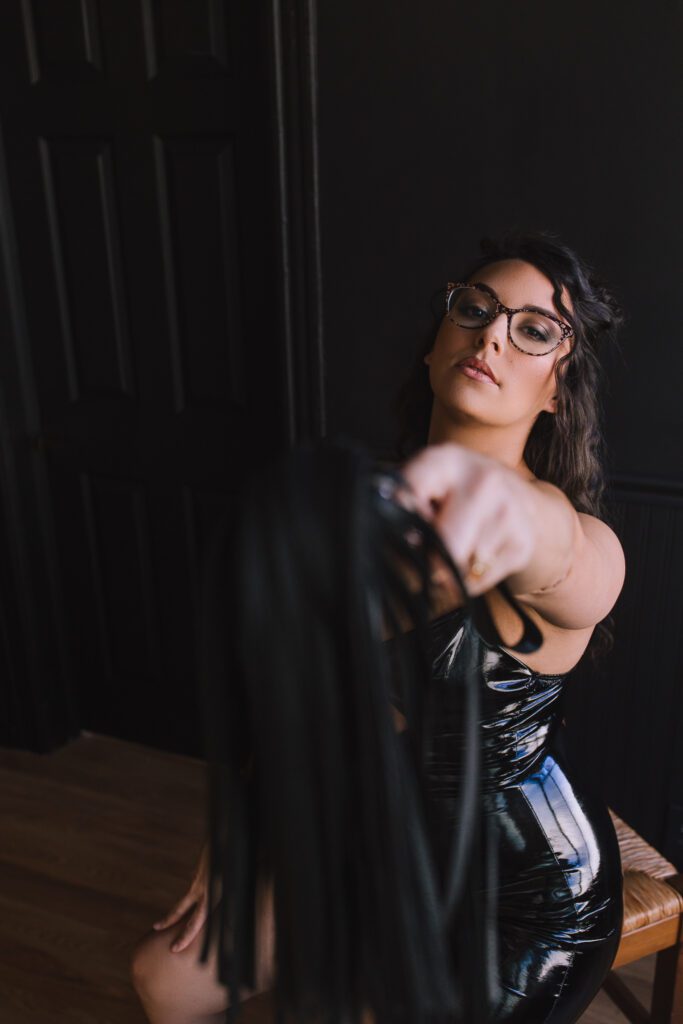 To create an atmosphere that embodies the essence of BDSM, the incorporation of props, outfits, and accessories becomes an integral part of the boudoir session. From ropes, handcuffs, and blindfolds to latex, leather, and corsets, these elements add visual and tactile stimulation, elevating the experience and capturing the unique aesthetic of BDSM. It’s all about creating a visually captivating and authentic representation of the desires and fantasies being explored.