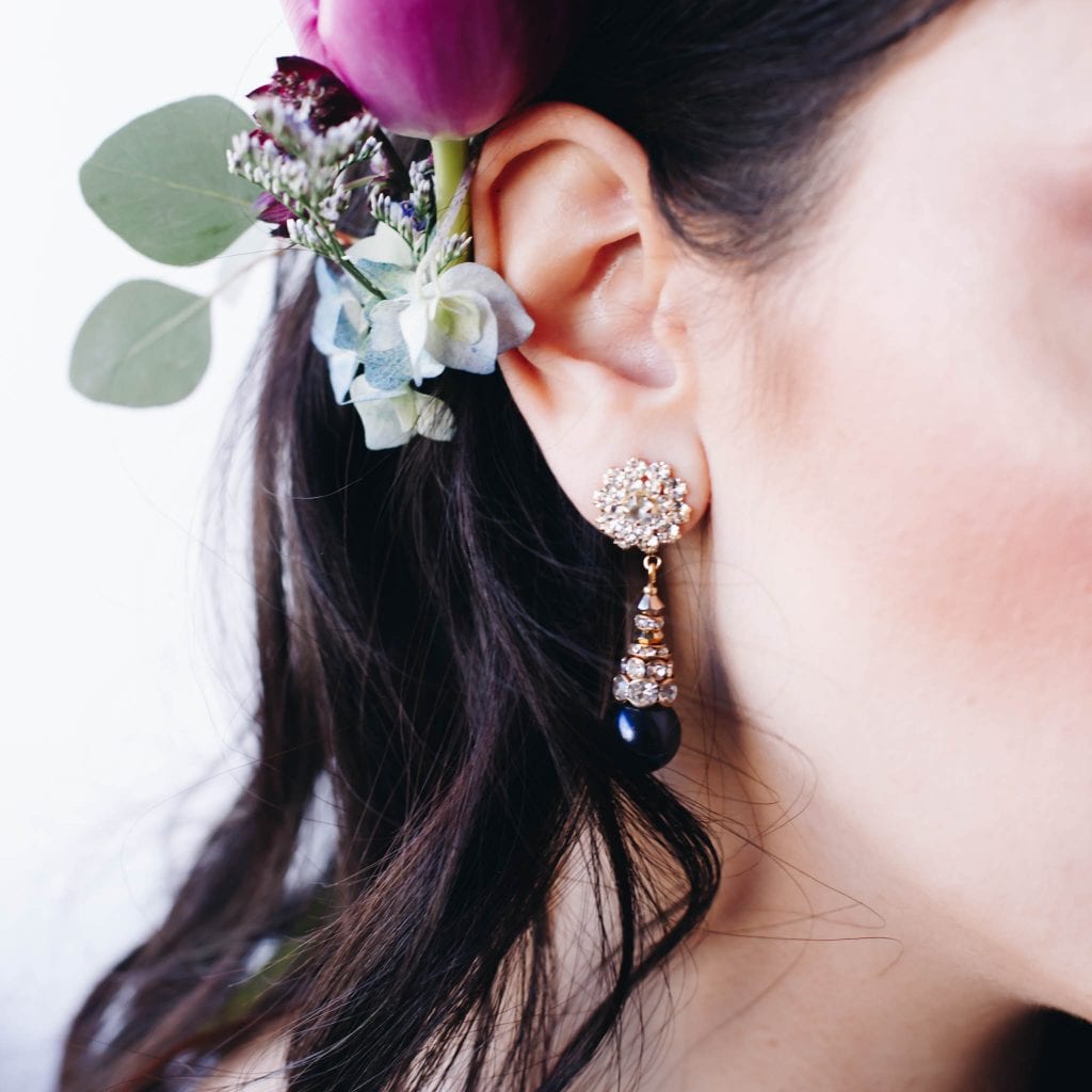 Isabelle’s Bridal & Eveningwear – Karen Frost and I decided on a wintery and romantic gown for our first stylized shoot together! She also outfitted our beautiful model, Cat, with a stunning pair of chandelier earrings by Giavan.