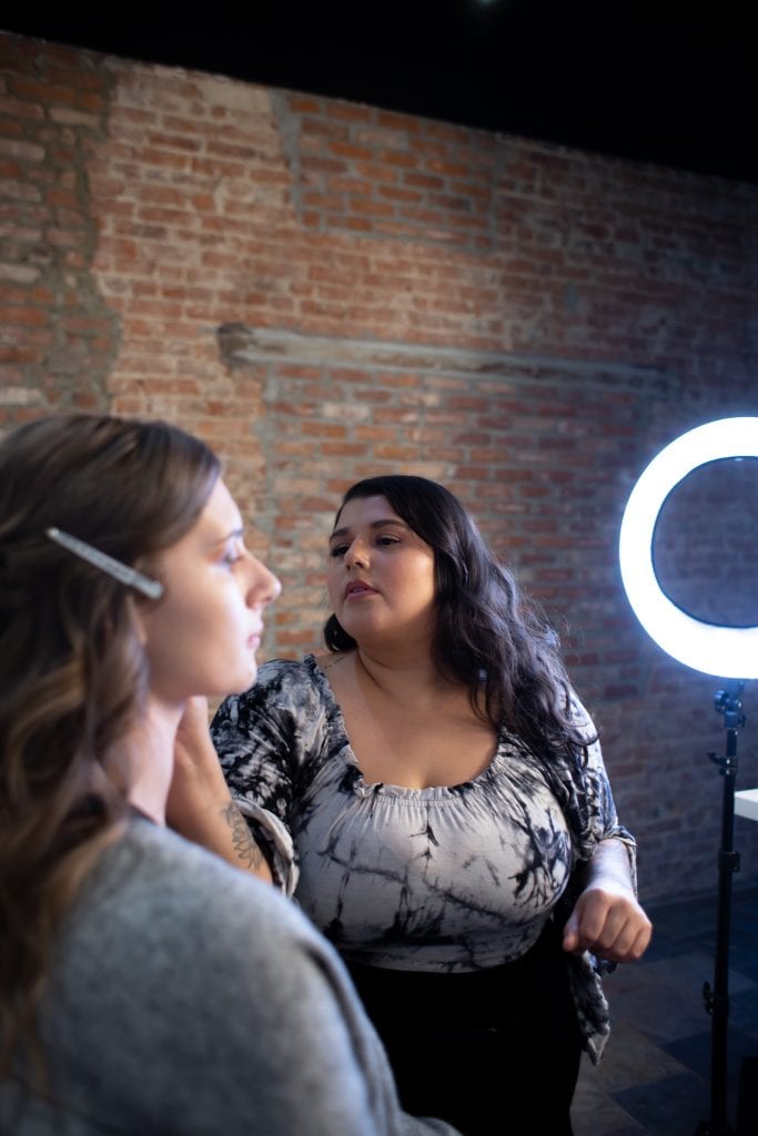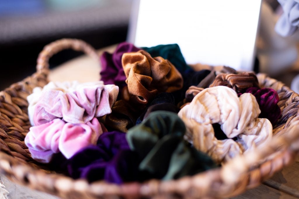 We met at Illustrated Beauty at 87 W. Main St on a brisk Monday morning where Ashley and Alessandra set to work glamming up our beautiful models. IB Owner Jenny and I headed over to the boutique to color match a velvet scrunchy (yes, YOU HEARD THAT RIGHT, scrunchies are back!) to one of the outfits.