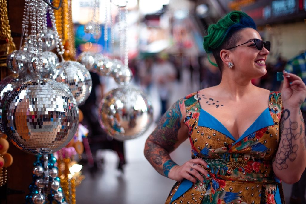 Later on the same day, we were afforded a little time to shoot some pinup on Fremont St with a beautiful retro-inspired dress that Julianne had brought with her from home. My first love (as you might know) is pinup, so this was just the cherry on top of the sundae that was Vegas.