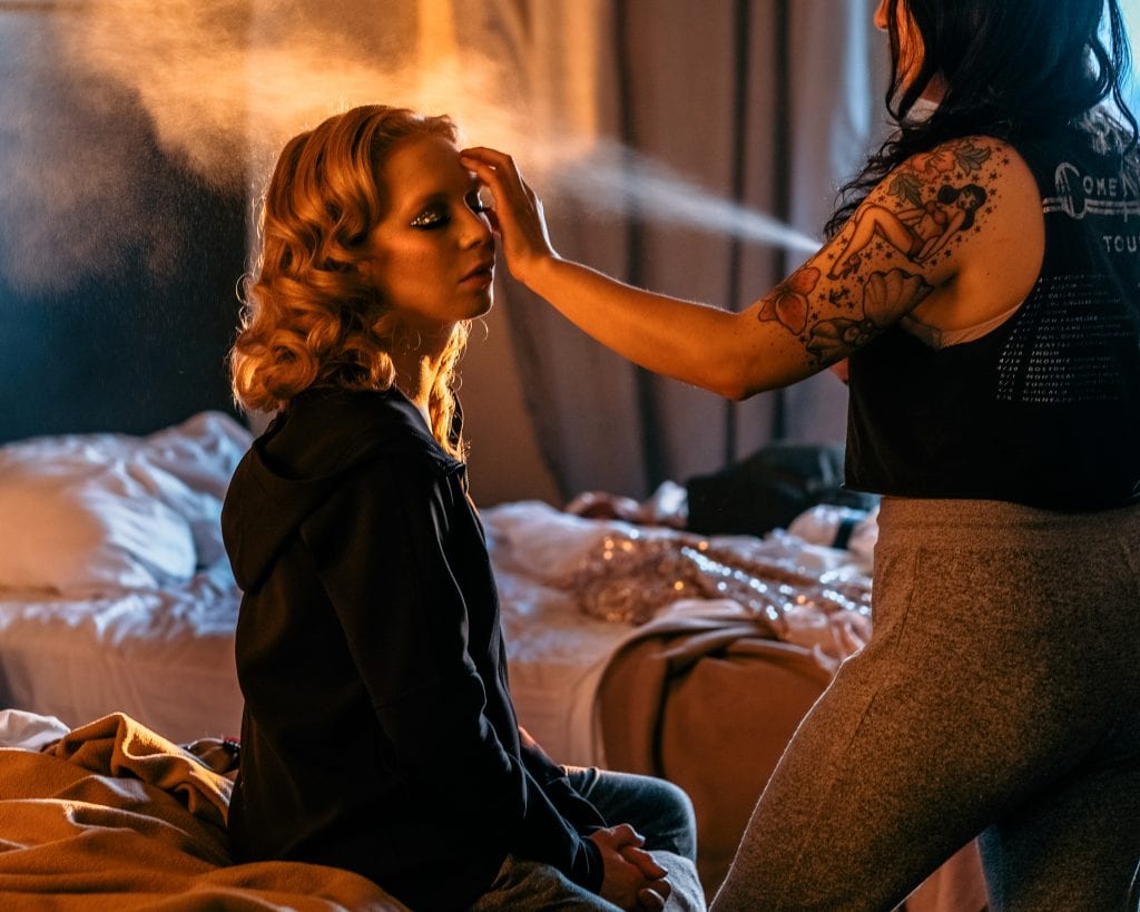 I ended up being able to produce a little mini shoot on Friday morning with art model Chelsea Brennan. The concept was Vegas Showgirl and we shot at sunrise, Chelsea woke up super early and showed up at my door at 5:30 am in beautiful makeup ready to have her hair set in retro waves.
